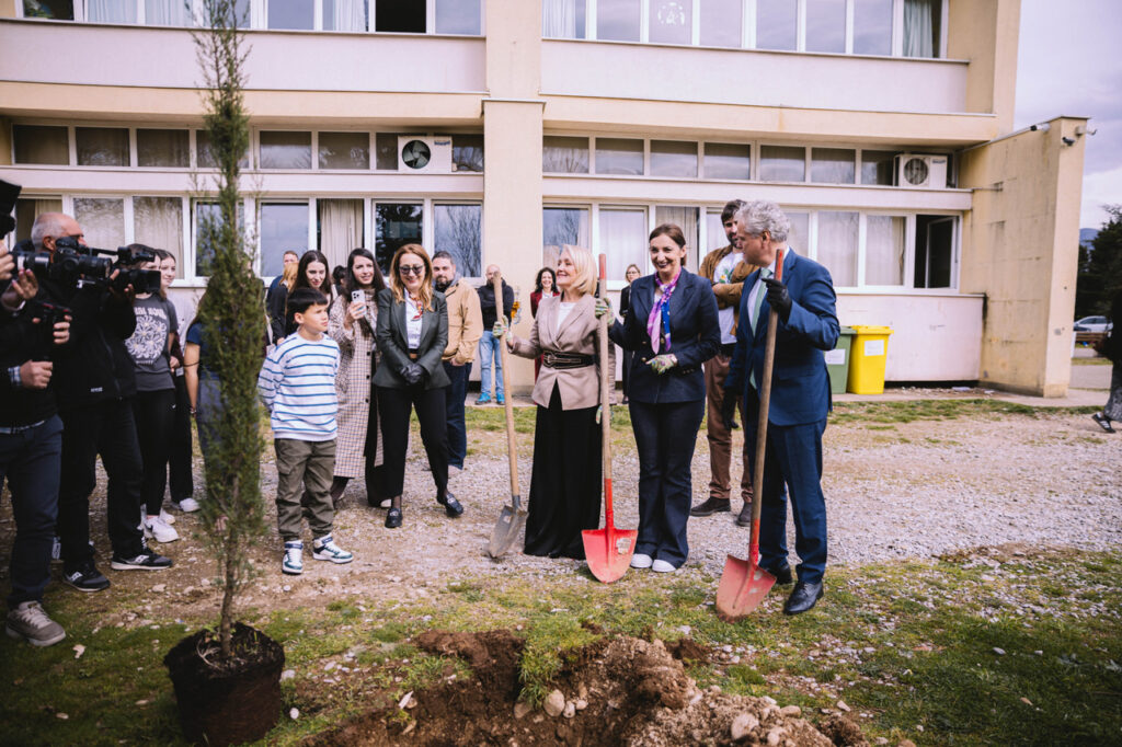 Ambasador Evropske unije u Crnoj Gori, Johan Satler, ministarka prosvjete, nauke i inovacija, Anđela Jakšić – Stojanović, direktorica Osnovne škole „Njegoš” Tatjana Jokić i Vuk Vujisić, pokretač inicijative „Ozelenimo Crnu Goru” učestvovali su danas u akciji sadnje drveća u dvorištu Osnovne škole „Njegoš” u Spužu, čime je djelokrug nacionalne ekološke kampanje „Čuvaj da te čuva” proširen na ozelenjavanje školskih dvorišta i razvoj učionica na otvorenom širom Crne Gore.